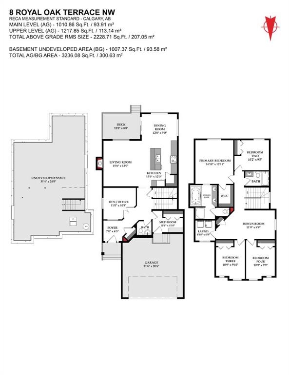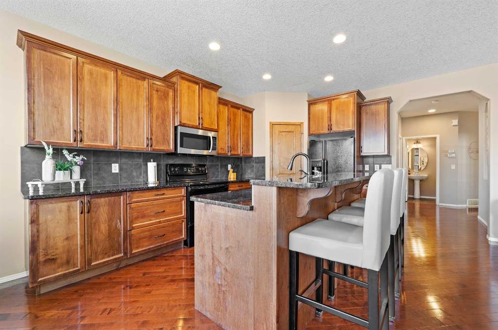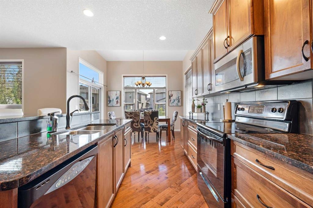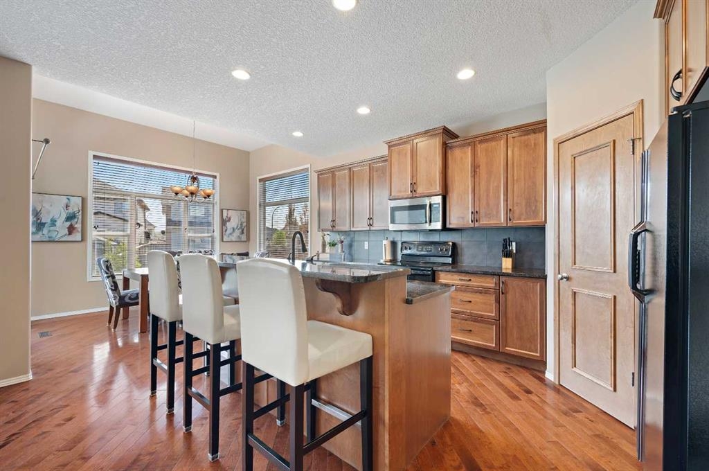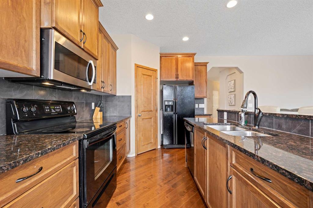 Welcome to this meticulously cared for home featuring a main floor den, 4 bedrooms plus a bonus room on the in the upper level in desirable Royal Oak. This family home boasts over 2200 sq ft of living space and many upgrades including A/C that allow you to just move right in and make this home yours! The main floor has stunning hardwood floors throughout most areas and is complemented by 9 foot ceilings with knockdown ceiling finish throught the home. Glass french doors lead to a private main floor office and an oversized mud room off the double attached garage includes a convenient built-in bench and large closet. The kitchen is the heart of this home with extended height maple cabinets, granite countertops, a large island with an eat-up bar, corner pantry and a spacious dining room with extra tall ceilings and lots of natural light. The spacious living room with a gas fireplace completes this level. Upstairs, the primary bedroom is generously sized with a walk-in closet, luxurious 5-piece ensuite including double sinks, soaker tub, a separate shower, and a private water closet for the toilet. The upper floor also features three additional good sized bedrooms and a central bonus room perfect for a family room, study, playroom, workout room or more. The upper level also features a good sized, sunny laundry room. The undeveloped basement presents you with potential to create a space according to your family's needs. The sunny south backyard with a deck and large shed are perfect for gardening and entertaining. This home has great schools and parks within walking distance. Royal Oak is a vibrant, family oriented community with many conveniences nearby to maintain an active and carefree lifestyle. Centrally situated on a quiet street near walking paths, parks, The YMCA, and only a a 4 minute drive (15 minute walk) to a shopping centre with stores such as Sobey's, London Drugs, Walmart, and lots of dining options to chose from.