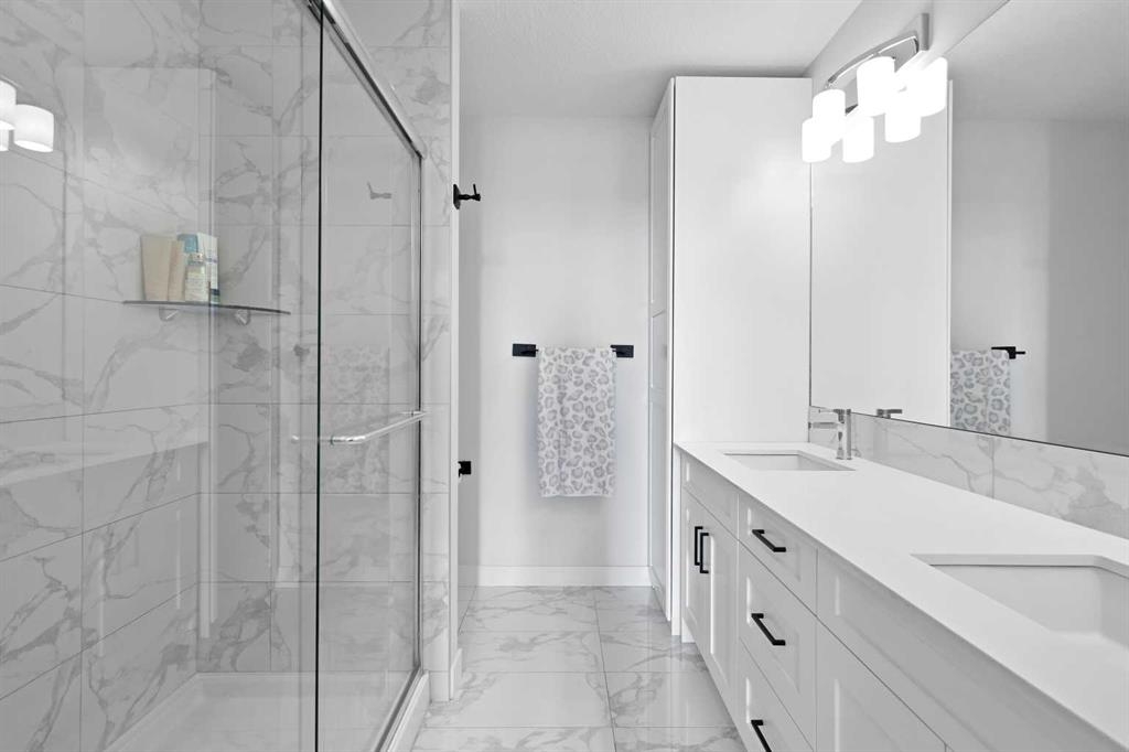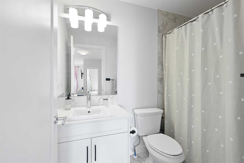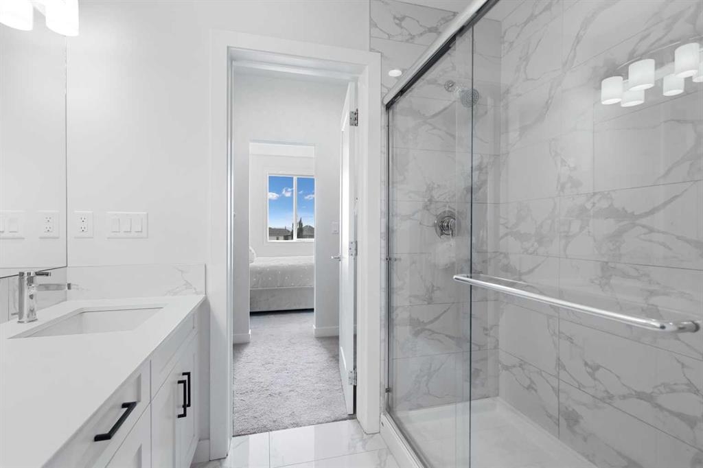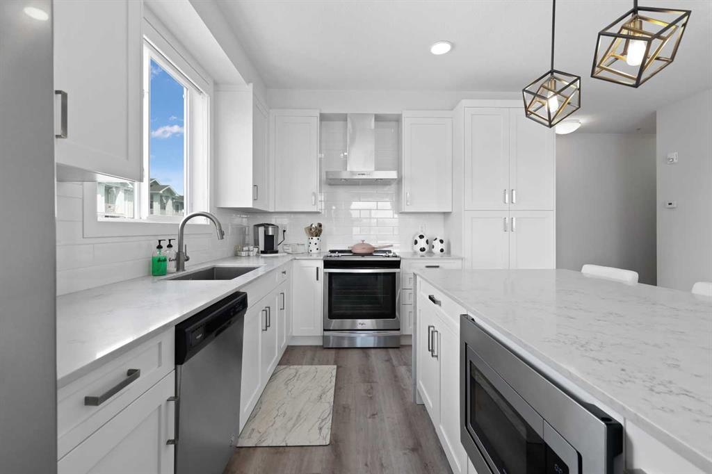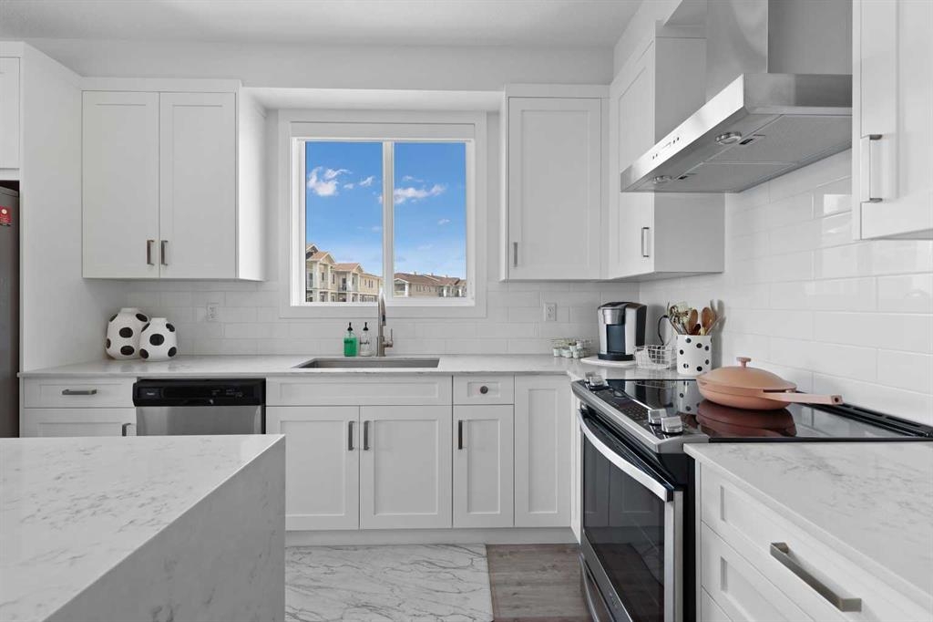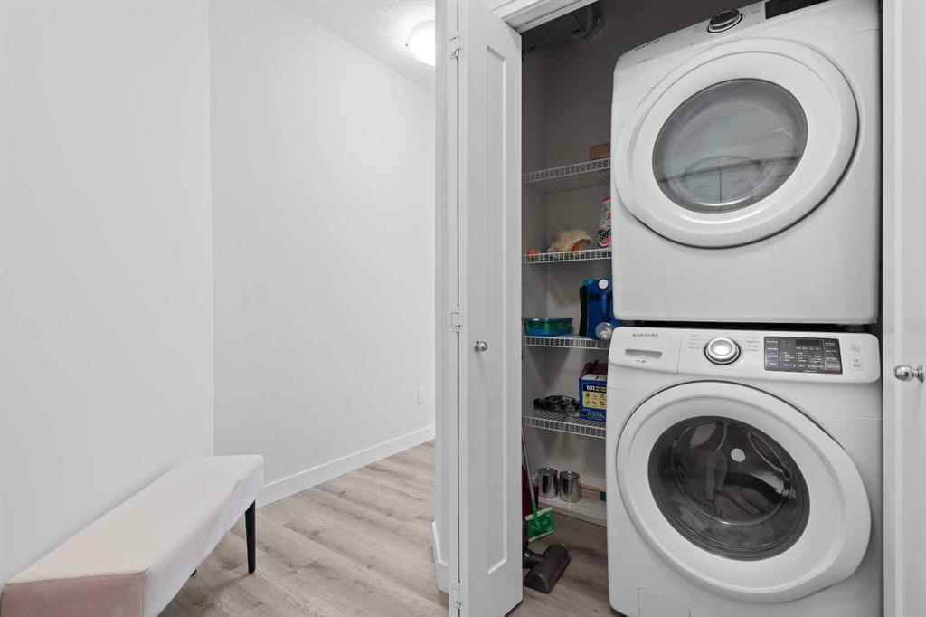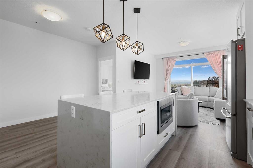Welcome to Cranston Ridge, where modern living meets convenience. This stunning third floor corner unit offers 2 bedrooms, 2 bathrooms and a contemporary design with many thoughtful upgrades! The kitchen boasts high-end stainless steel appliances, quartz countertops, extra large island with a stunning waterfall edge, beautiful cabinetry, a pantry, an impressive upgraded hoodfan and new light fixtures over the island. The spacious primary bedroom with blackout blinds, includes a large walk-through closet leading to a beautifully designed 4 piece ensuite with a fully tiled shower, double-sink vanity and additional storage. The second bedroom is bright and located next to the main bathroom. This room is perfectly suited for guests or for use as a home office. The open floor plan flows seamlessly into a generous living area, ideal for entertaining or relaxing in front of the TV (electric fireplace not included). Step outside to the sunny balcony, complete with a natural gas hookup for your BBQ. The corner location offers an abundance of windows and lots of natural light. Additional conveniences include a high-efficiency washer and dryer, a titled heated underground parking stall, and a storage locker conveniently located near your parking space. Cranston Ridge offers a well-maintained and desirable complex, located just minutes from shopping, hiking trails, playgrounds and schools. Enjoy easy access to the Bow River Valley and Fish Creek Park, with excellent connections to Seton, the South Calgary Health Campus, and major routes like Stoney and Deerfoot Trails. The community HOA fee includes access to the exclusive Century Hall, offering amenities such as a gymnasium, multipurpose rooms, an outdoor rink with a Zamboni, a pleasure pond, toboggan hill, splash park, playground, pickleball/tennis courts, and basketball. This apartment is perfect for anyone seeking an elegant, low-maintenance lifestyle while staying close to nature, playgrounds, and shopping, with quick access to Deerfoot Trail, Stoney Trail, Seton Lifestyle District, and the South Health Campus Hospital. This home is immaculate and ready for you to simply move in!