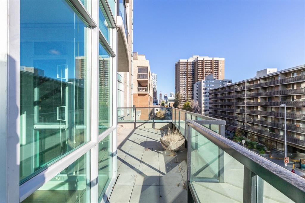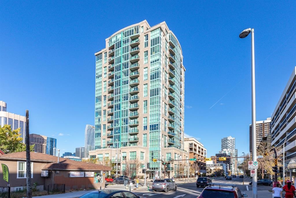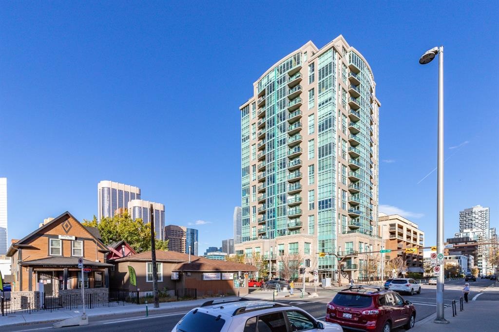 ~ PERFECT INVESTOR SCENARIO ~INCREDIBLE VALUE!~MASSIVE PATIO!~Welcome to the Xenex on 12th, an award winning condo building built by Bucci Development. Conveniently located right in the heart of downtown Calgary, this spacious 2 bedroom, 2 bathroom condo has beautiful, bright, generous living space. High 9' ceilings, expansive floor to ceilings wall of windows adorn the space with lots of natural light from the west facing exposure and amazing views of downtown. The modern kitchen is finished with warm tones accented by the white tiled backsplash, stainless steel appliances and granite counters. A dining area and bar area with wine cooler. Large living room facing the balcony with almost 100 sq ft of outdoor space to enjoy. Master bedroom has a 3 pc ensuite with his and her closets! Both bedrooms have huge windows offering gorgeous views of your balcony and the skyline. Air conditioning for hot summer months and heated floors in both bathrooms for cold Calgary winters. Amenities include in-suite laundry, storage locker, on-site caretaker, and one titled underground heated parking stall. This is a very well managed complex located close to public transit, shops, restaurants with easy access to downtown and many major arteries. TENANT IN PLACE - must be assumed.